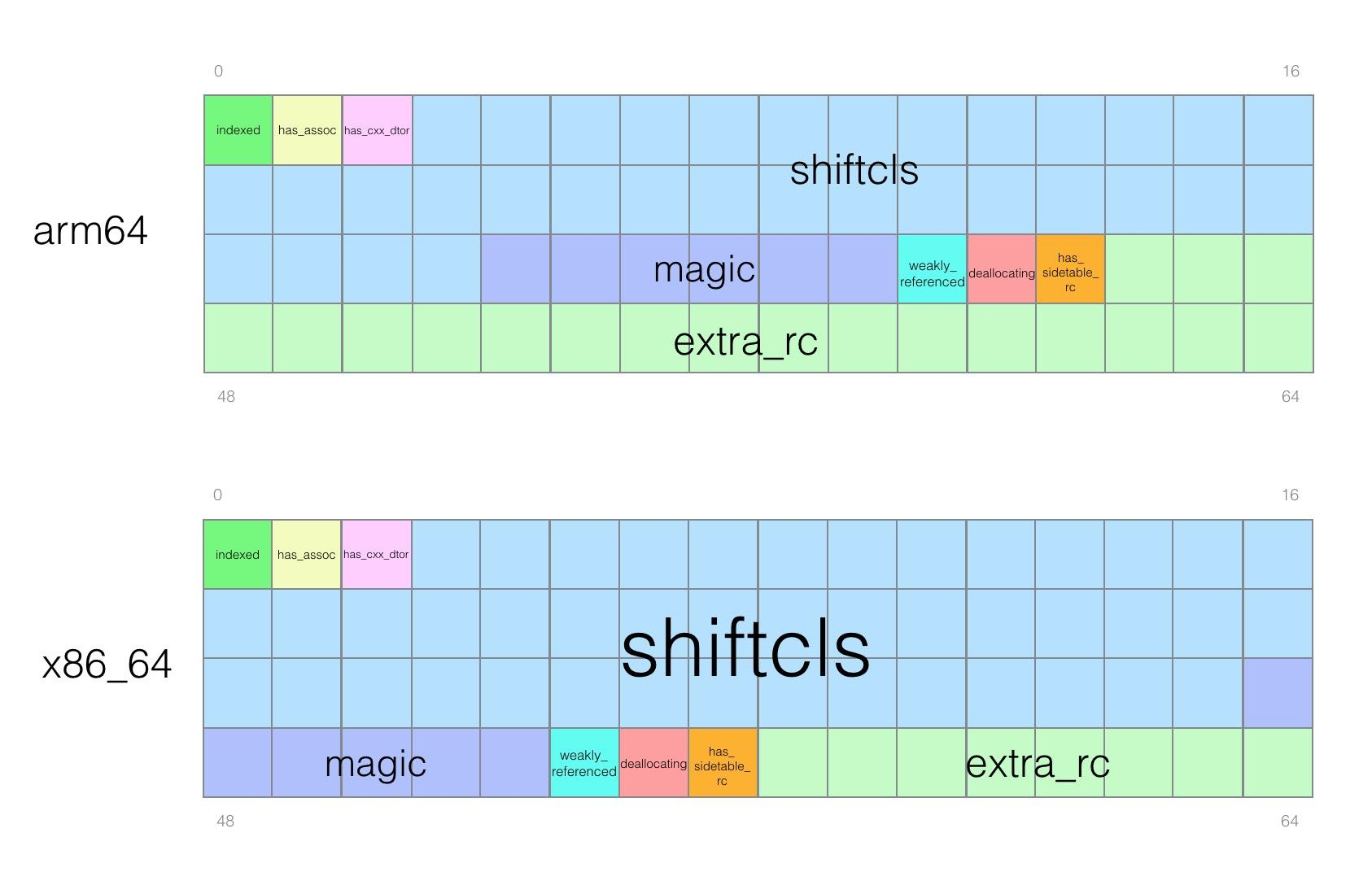 uintptr_t shiftcls : 44; // MACH_VM_MAX_ADDRESS 0x7fffffe00000