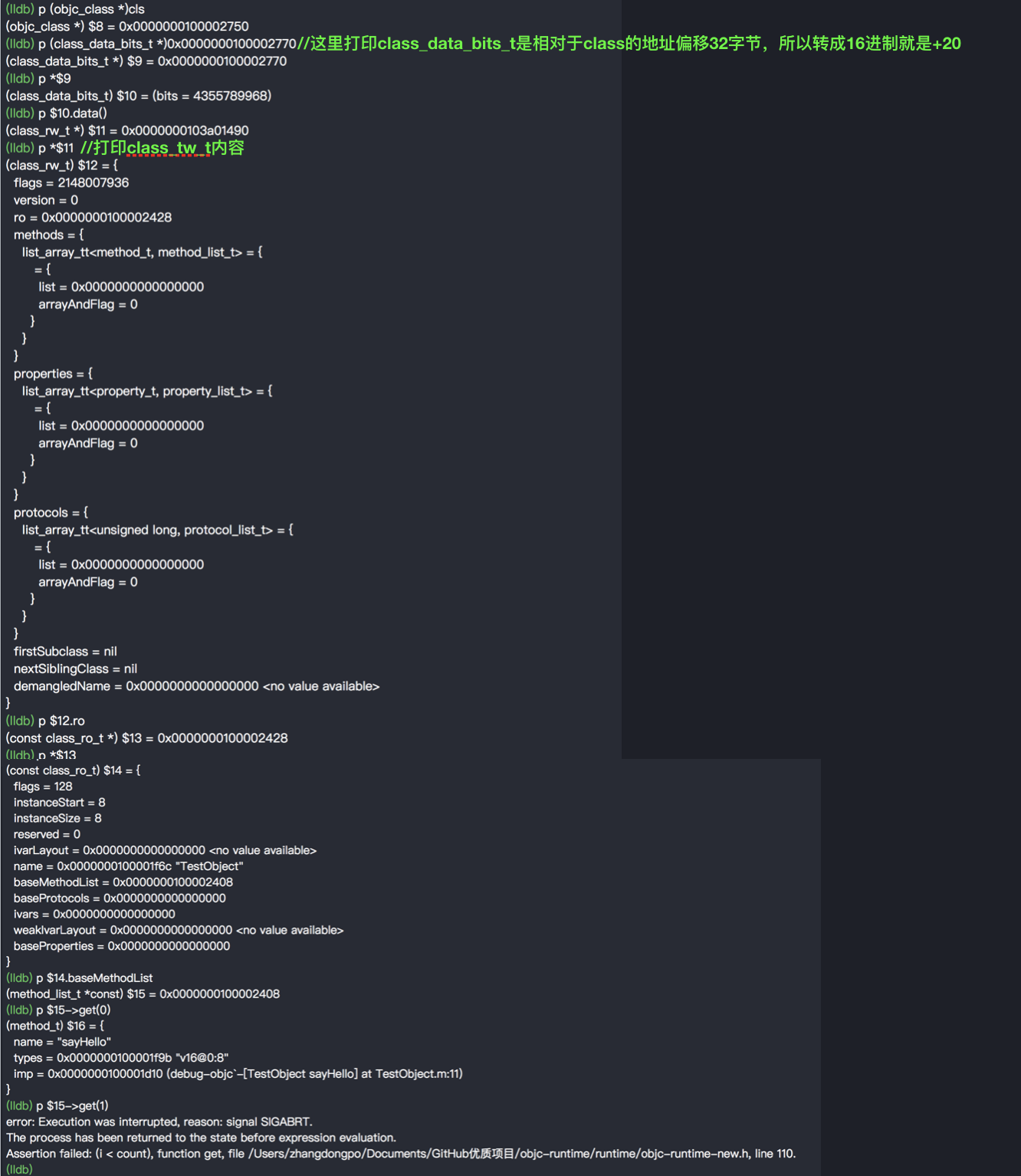 - 在class_ro_t中的属性运行时就不会改变了,运行时添加方法,会修改class_rw_t的方法属性,对于方法添加,我们在消息发送的文章再来分析。