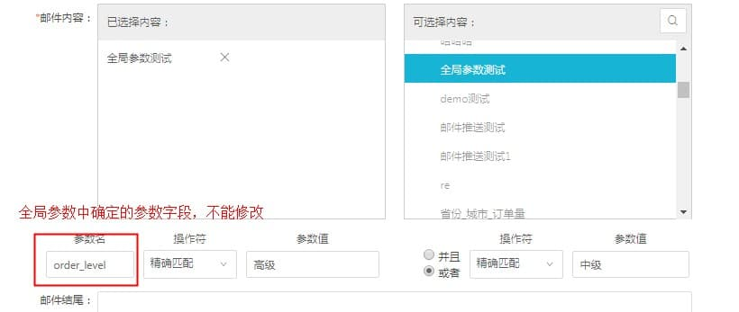 如下图,选择‘订单等级’字段,参数命名为order_level: