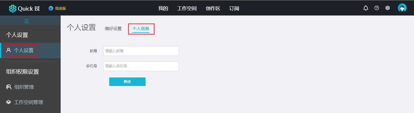 注意:如上图,第二个收件人名称显示灰色,说明该账户没有设置邮箱等,若收件人未设置邮箱,则该收件人收不到邮件。请参考下面截图:在 我的- yunbi_default_space-空间设置-个人设置-个人信息 中填写必要信息。