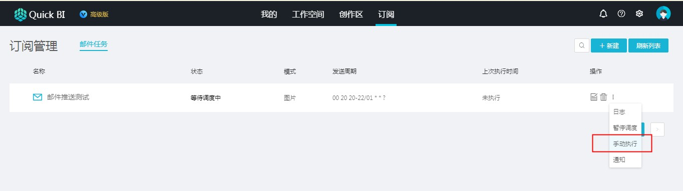 另外可以在导航栏订阅,‘点点点’编辑区设置手动执行: