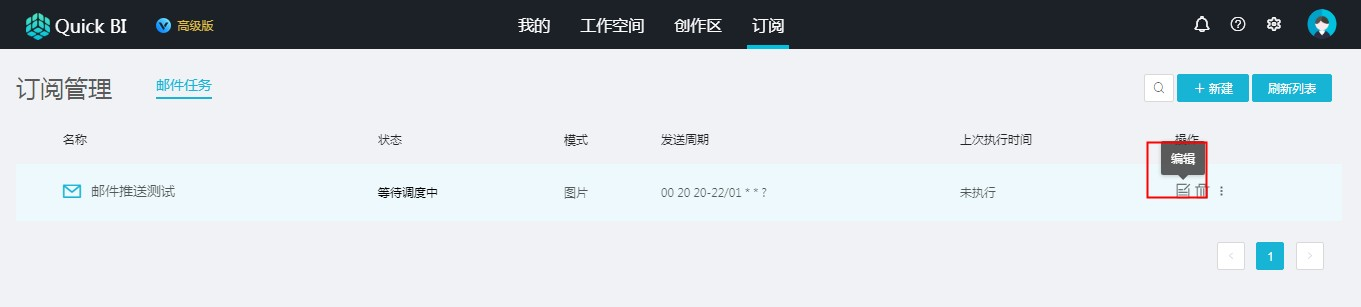 3.如果想要对邮件设置进行再次编辑,点击下图编辑按钮,若直接从仪表板中进入都是新建邮件: