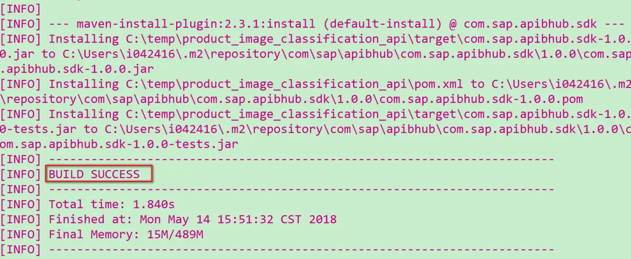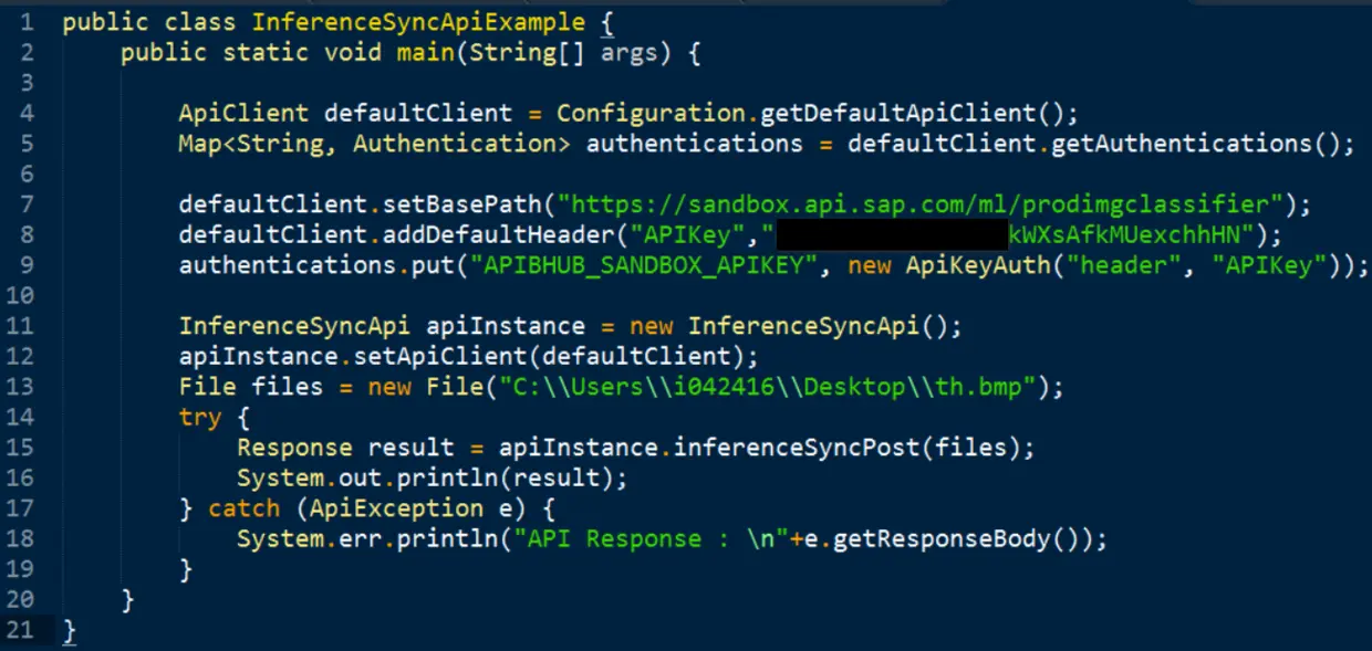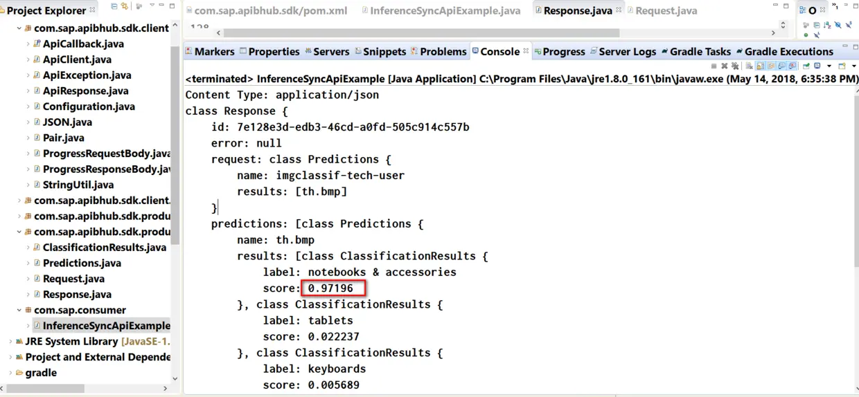 开发一个Java程序,用户可以指定一张图片,该Java程序调用SAP Leonardo上训练好的机器学习API,该API会识别该图片,给用户返回一个文本信息,告诉用户识别结果。
