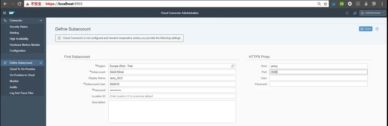 在SAP云平台上完成必要配置,同Cloud Connector建立连接。