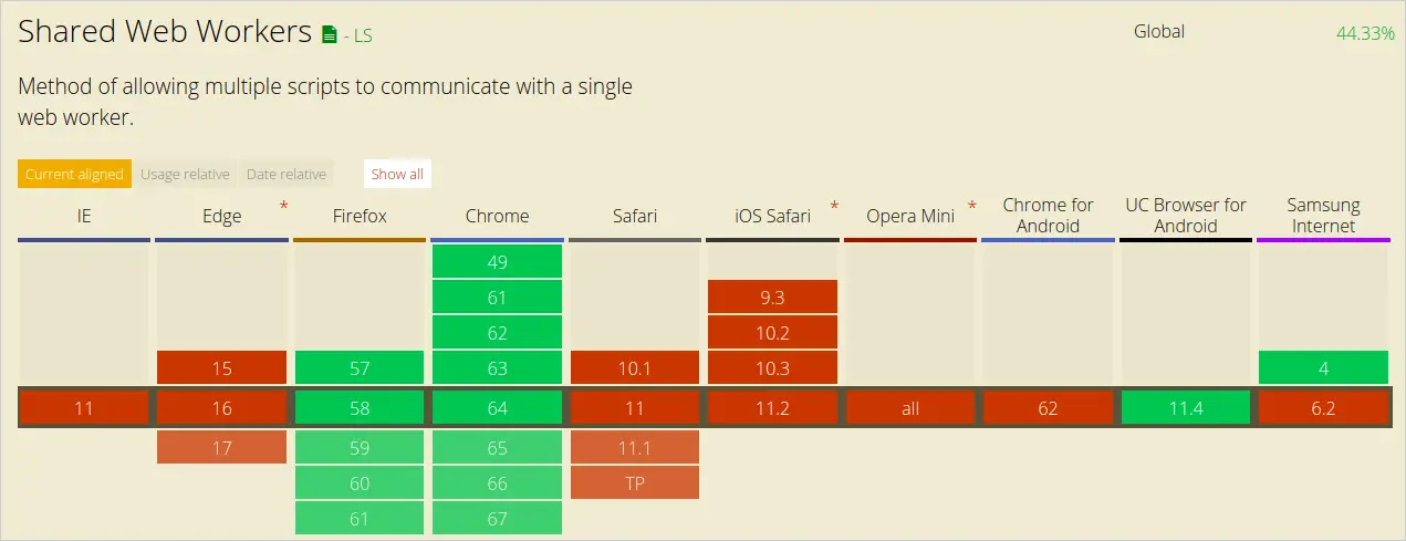 Shared workers 可以被运行在同源的所有进程访问(不同的浏览的选项卡,内联框架及其它shared workers)。