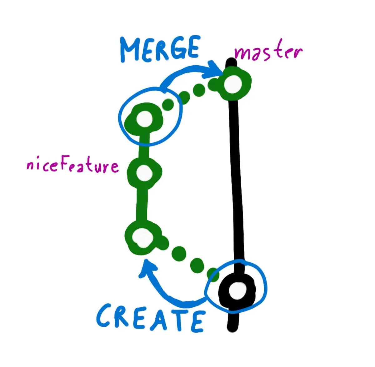 - 当工作完成后特性和修复分支不会直接合并到主分支;它被合并到一个叫做开发的分支中