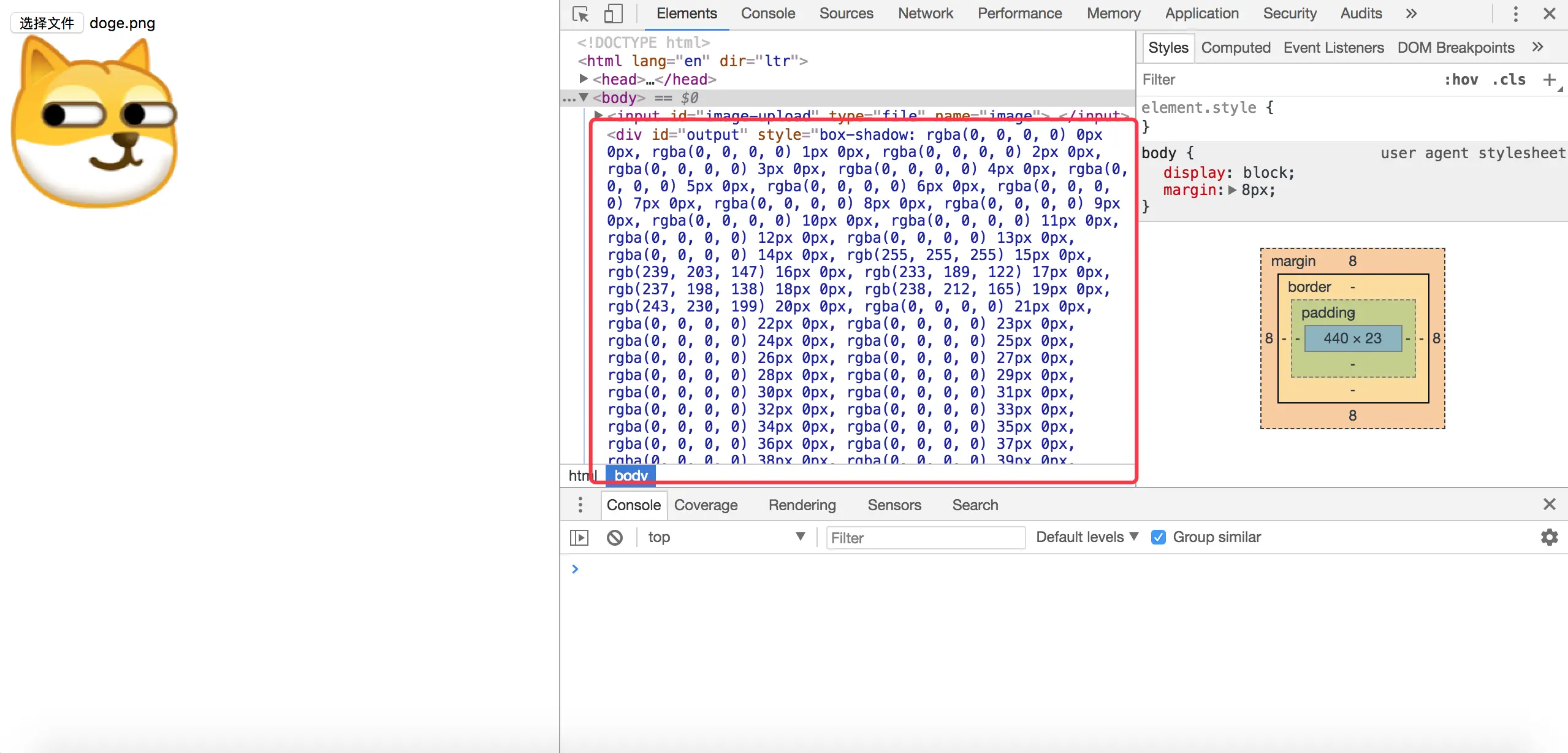 首先,并不打算单纯的实现某一张图片(这样太没意思了),而是通过上传图片,来动态生成box-shadow的数据。
