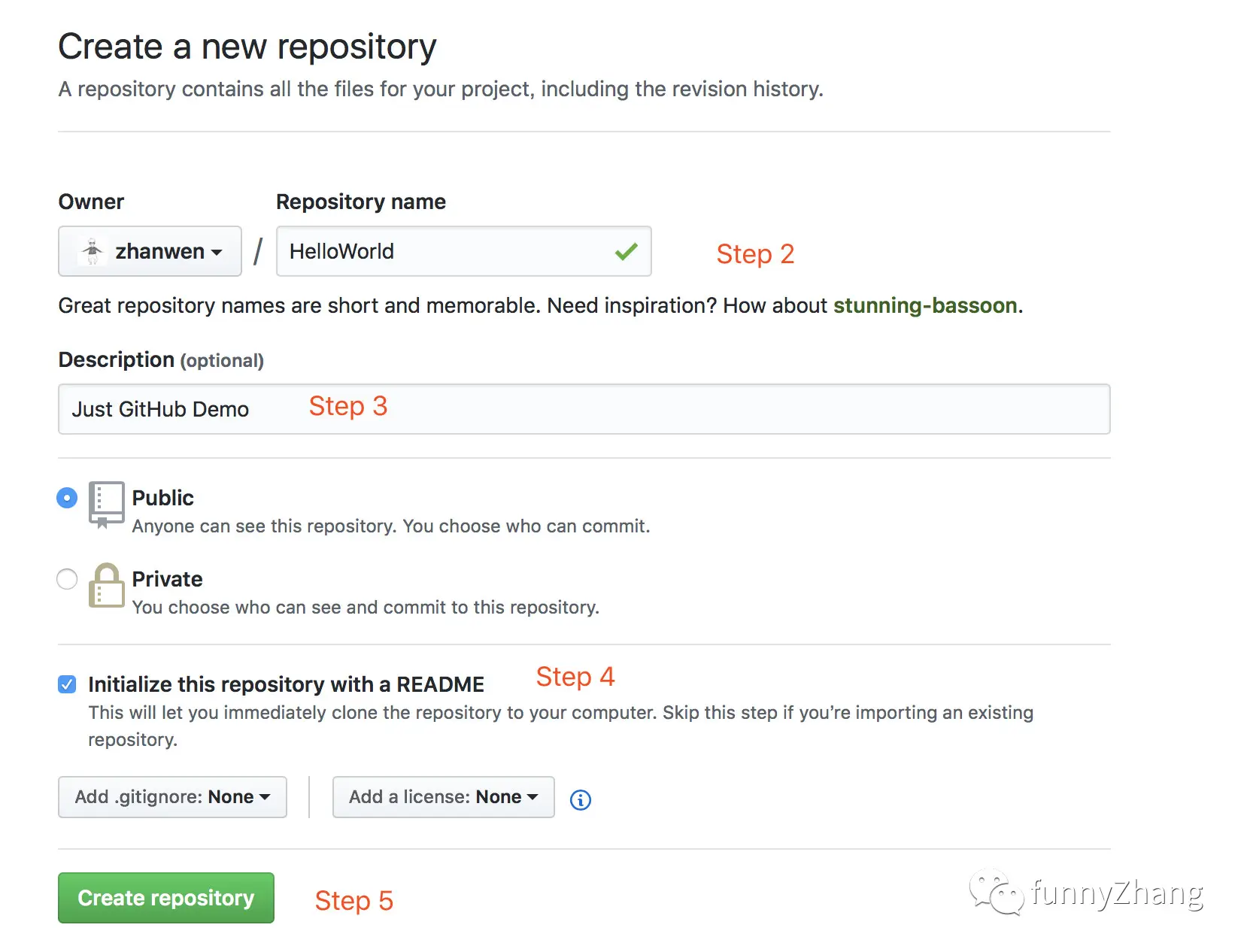 2、仓库的名称,我们设置为 HelloWorld。