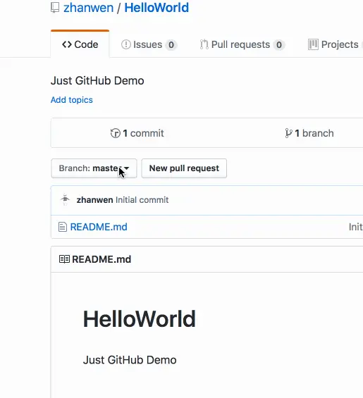 1、进到我们刚才创建的 HelloWorld 仓库。