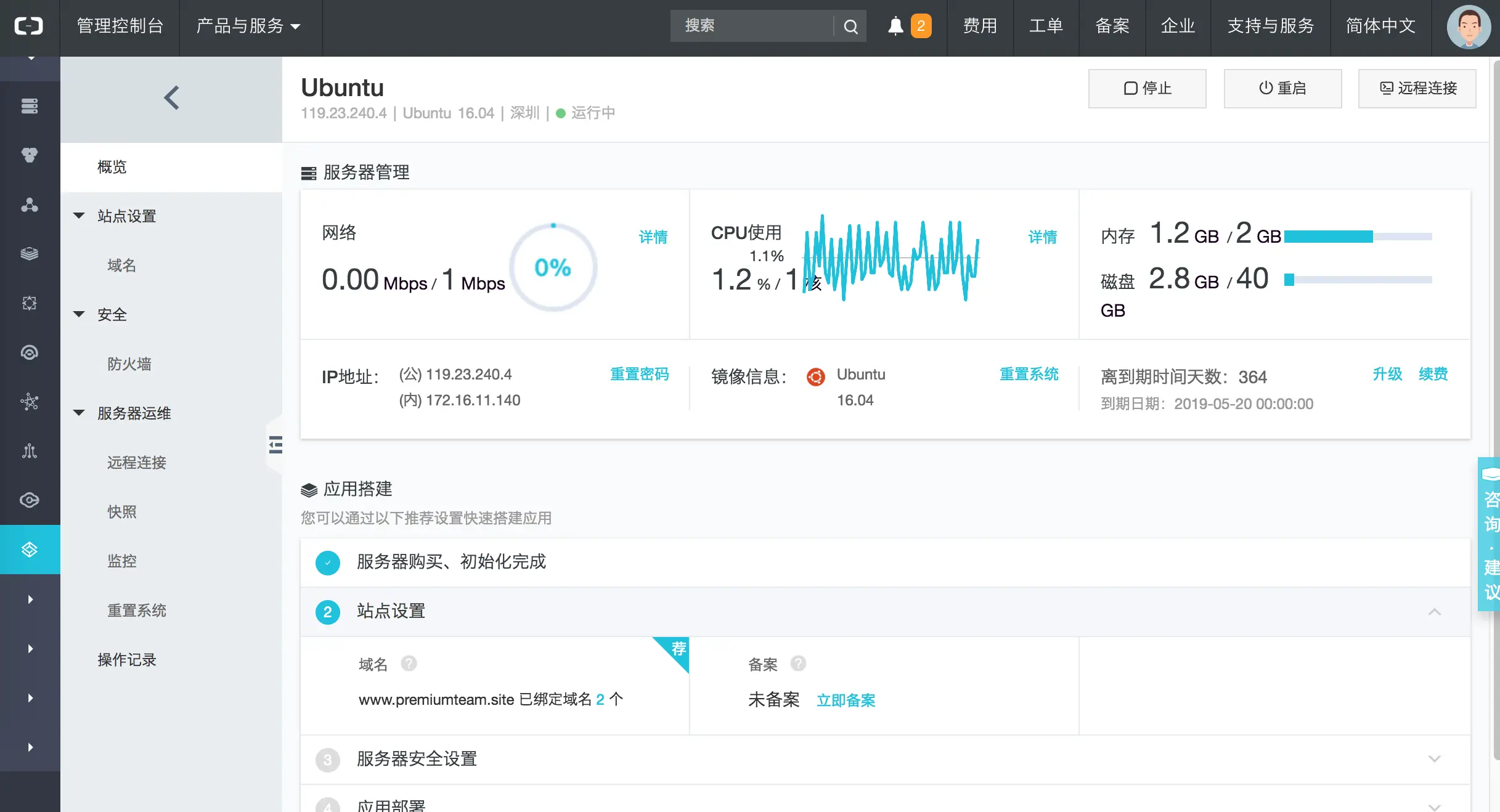 - 进入管理控制台,我这里是购买的学生套餐,这样服务器购买就完成了
