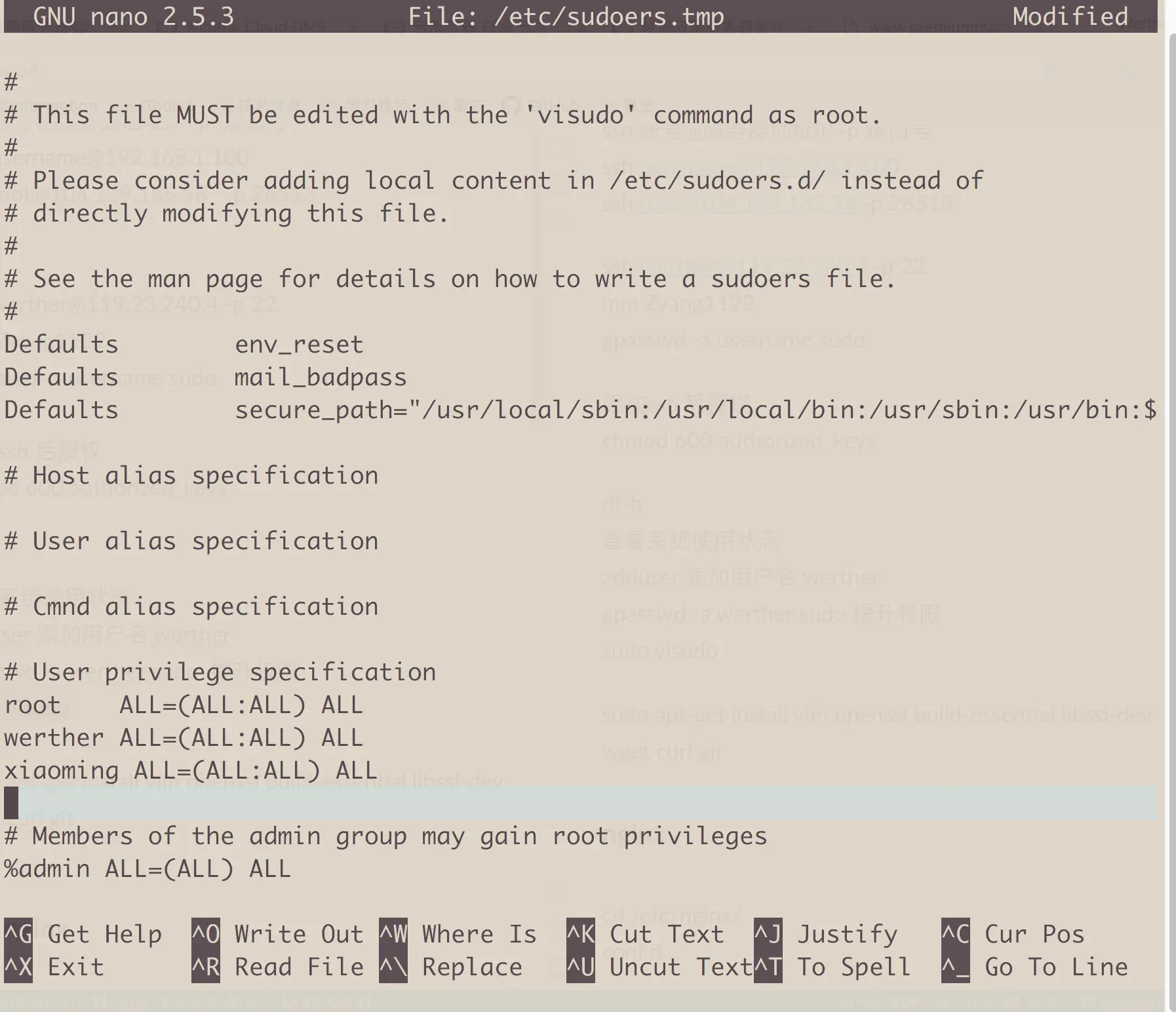root@:~#sudo visudo