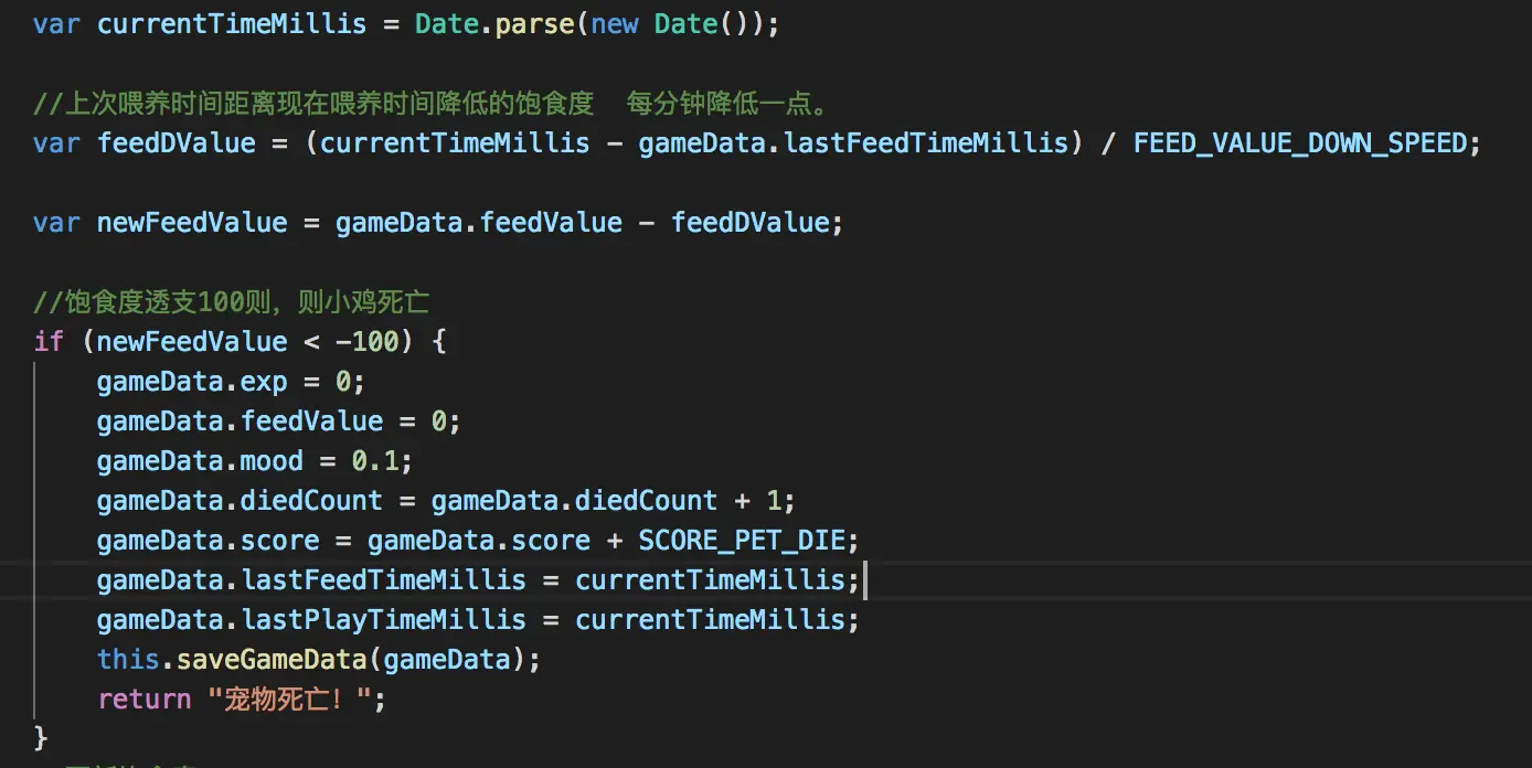- 宠物如果饱食度过低,则会死亡,死亡扣除积分。
