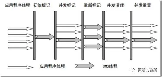 从名字(包含“Mark Sweep”)上就可以看出CMS收集器是基于“标记-清除”算法实现的,它的运作过程相对于前面几种收集器来说要更复杂一些,整个过程分为4个步骤,包括: