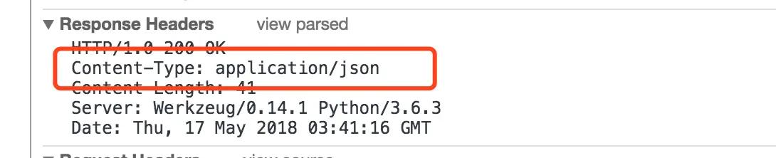 接下来是第二种返回json数据的响应头,如下: