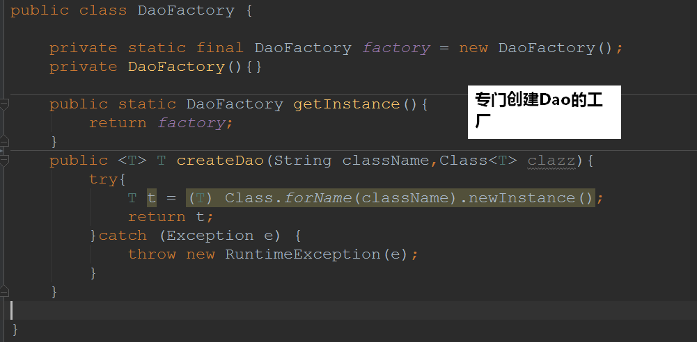 我有一个DaoFactory,逻辑很简单就是专门创建Dao对象的~