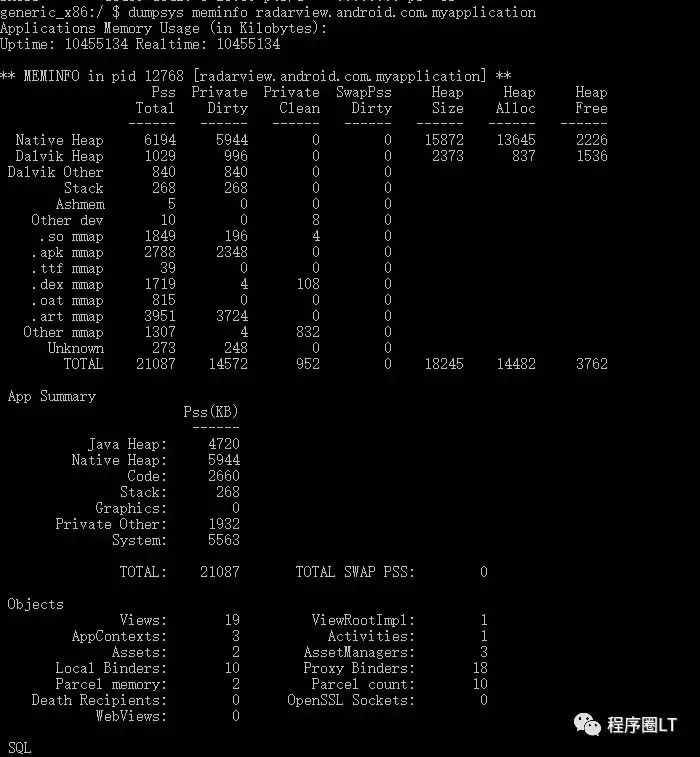 通过命令 dumpsys meminfo + 进程名字,可以获取具体信息: