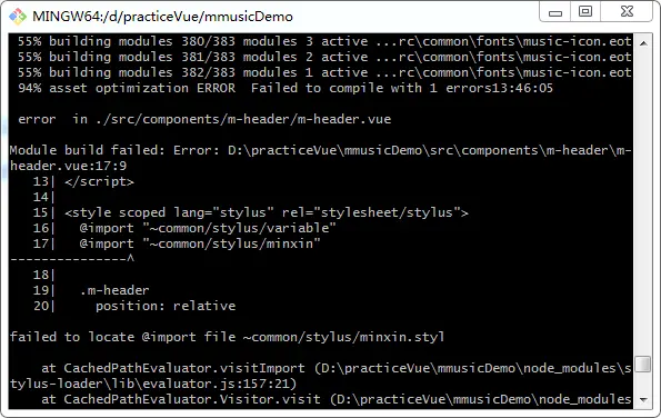 应该是mixin,我写成了minxin。所以大家一定要注意文件的路径和名字。使用import引入时,直接可以 @import "~common/stylus/******"。一定要对照好文件路径呀。