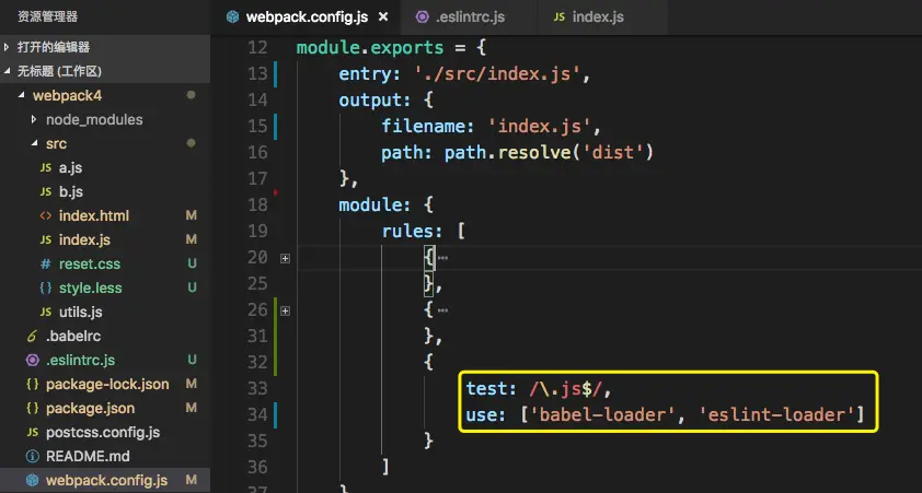 - 将配置好的规则添加到webpack中对js文件检查