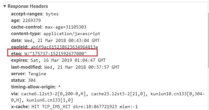 - Etag是服务器响应请求时,返回当前资源文件的一个唯一标识(由服务器生成),如下