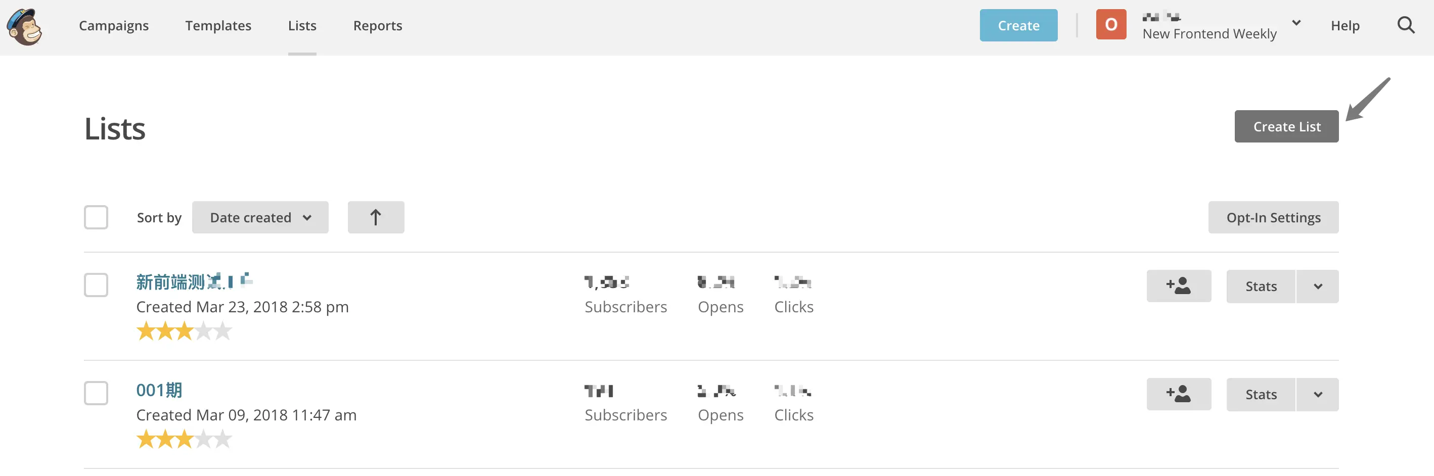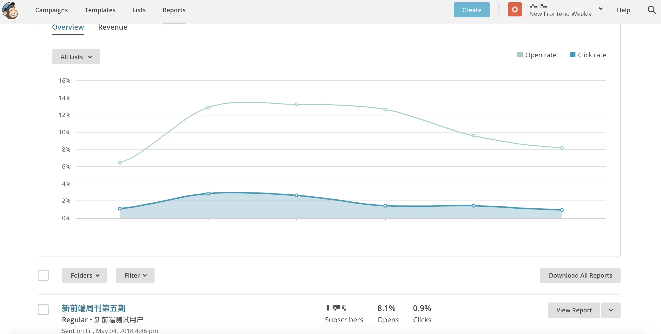 「 Reports 」中可查看发送数据报告,「 List 」列表中还可以详细查询新增订阅数据、退订人数等。