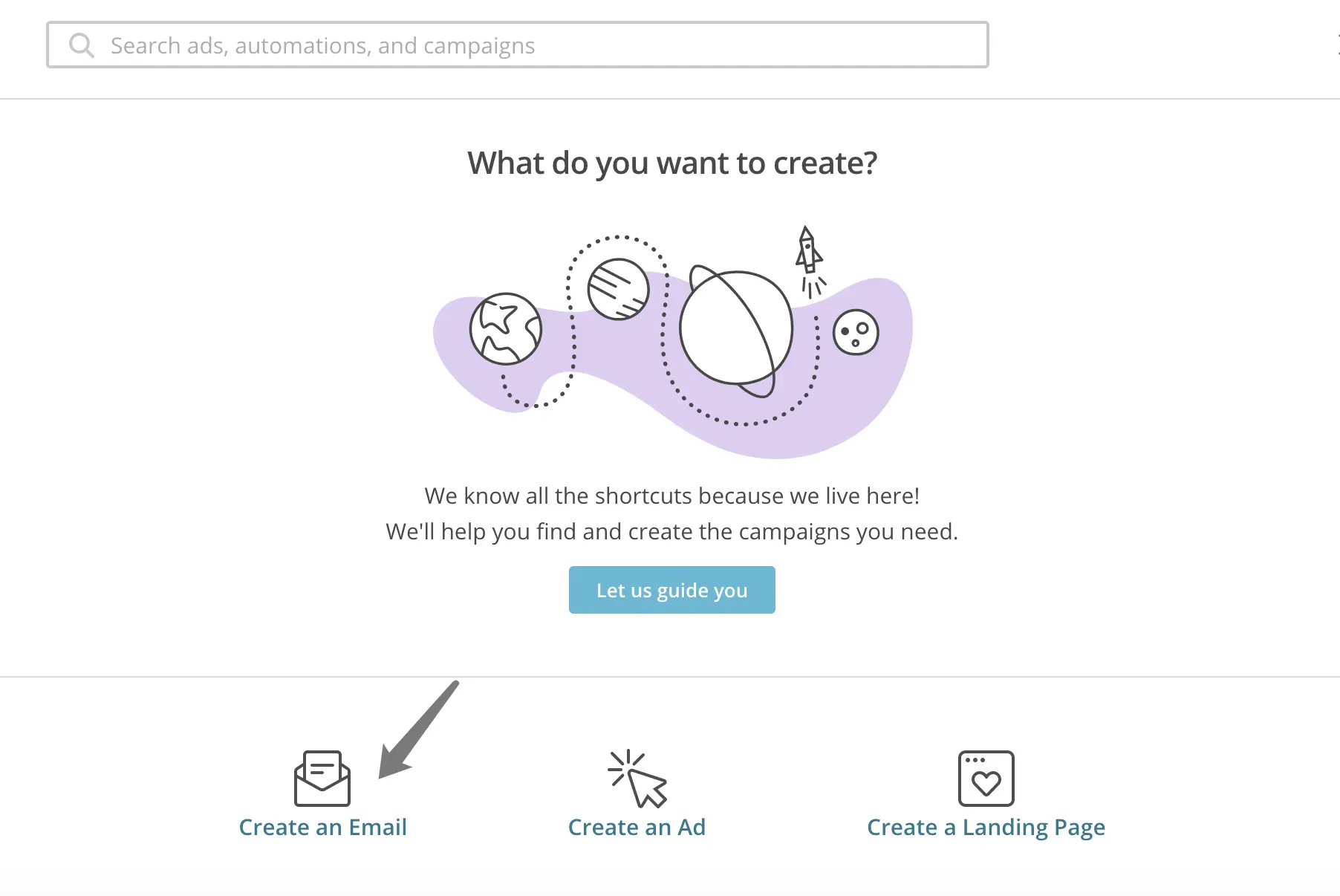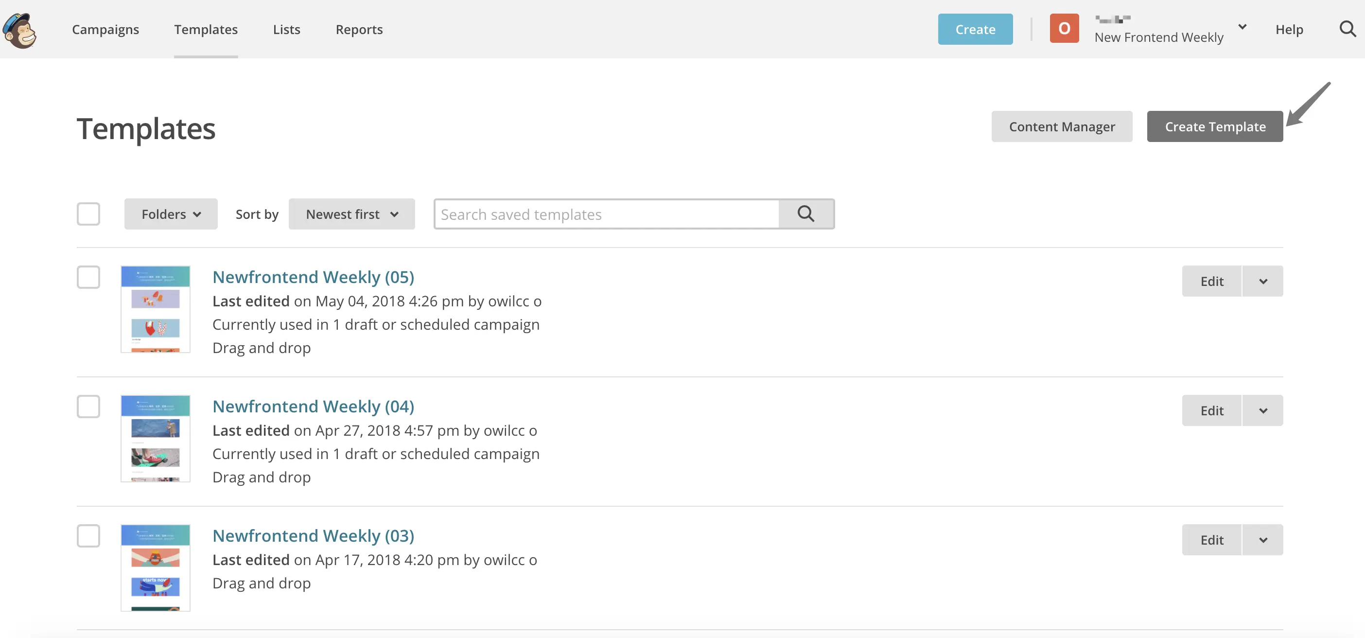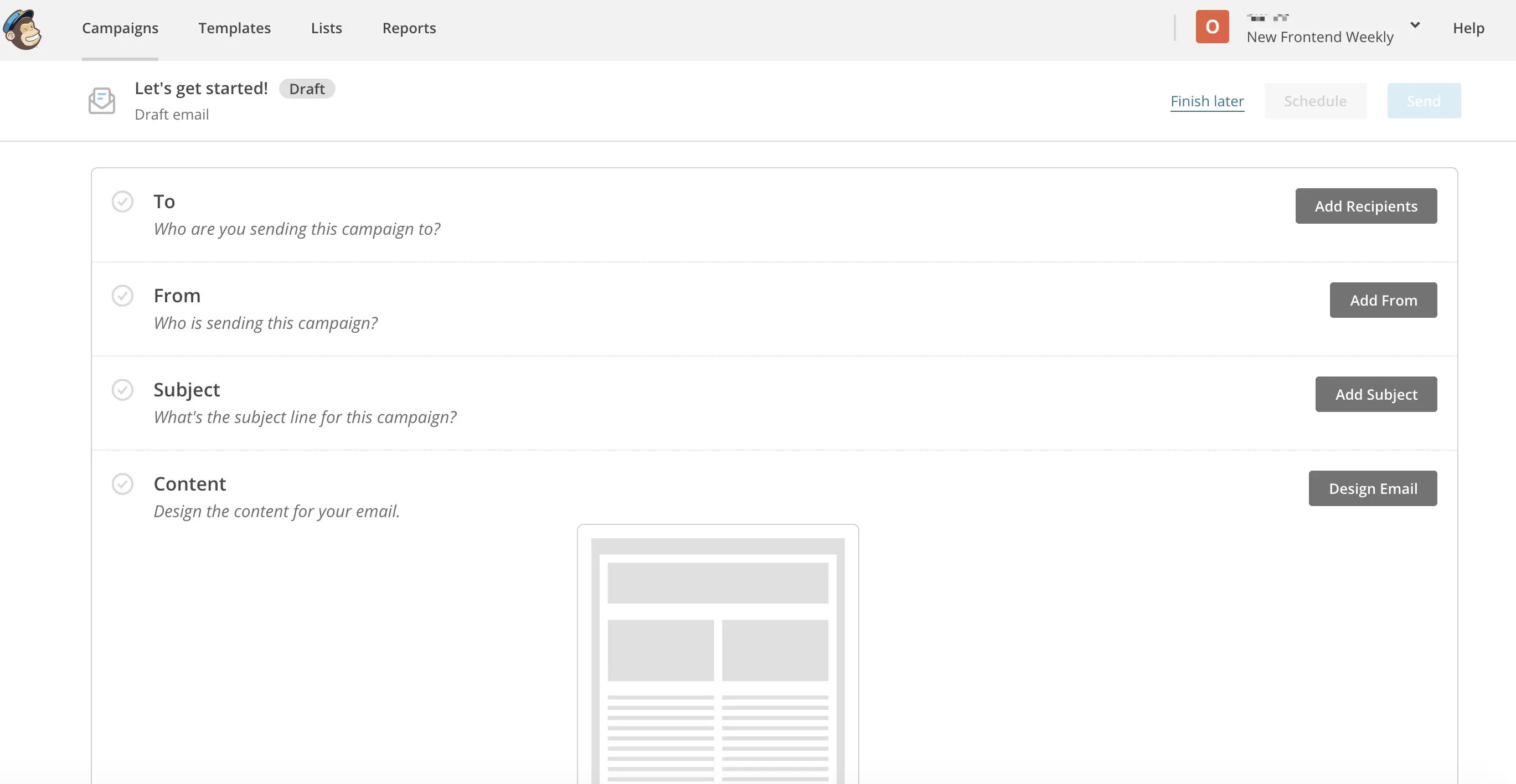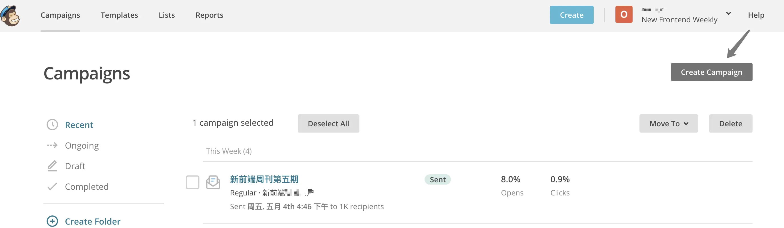 「 Campaigns 」- 「 Greate Campaigns 」- 「 Greate an Email 」创建新的发送项目。