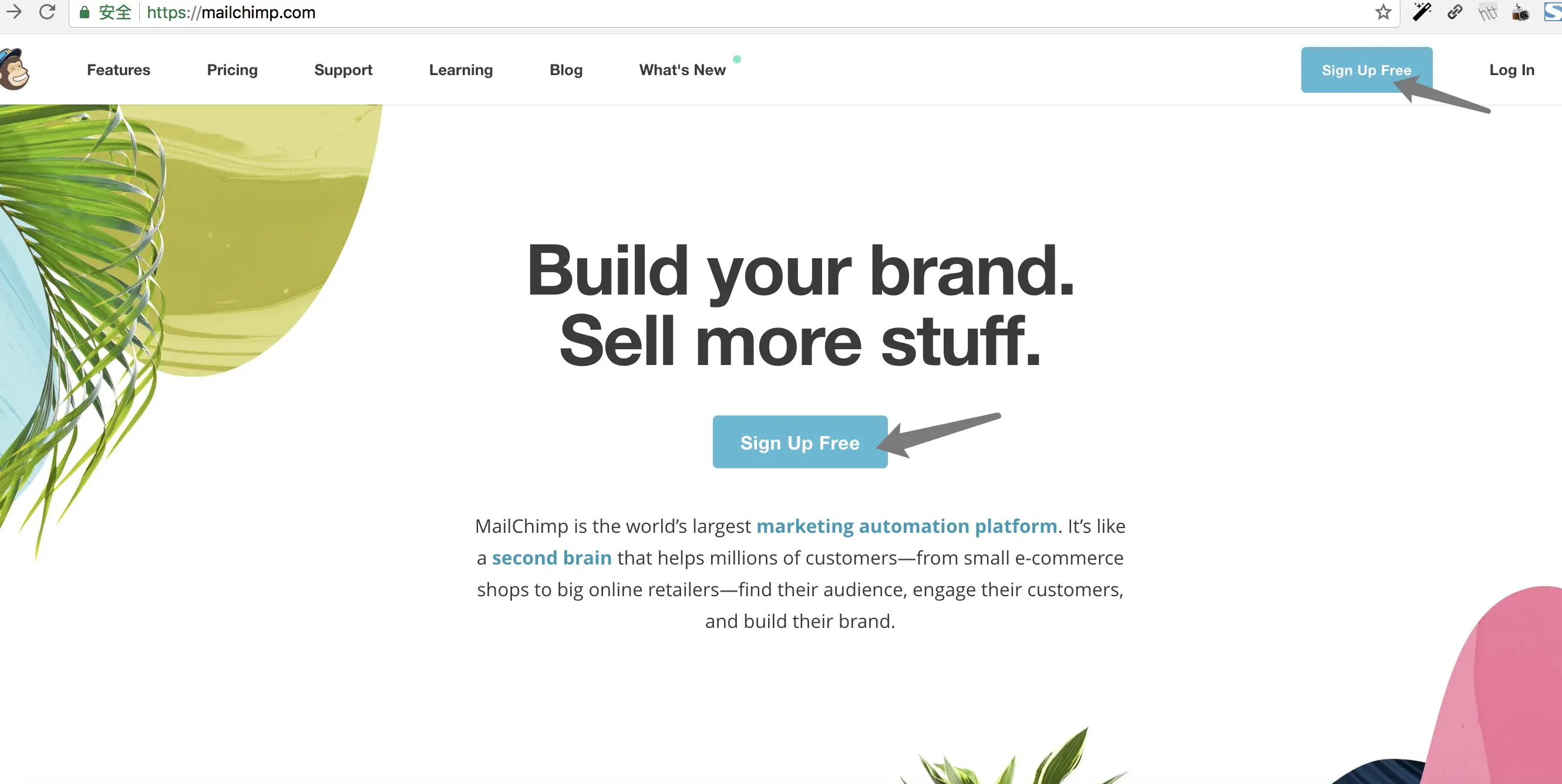 登陆官网:https://mailchimp.com/ ,点击「Sign Up Free」进行账号注册,设置完成后点击「Get Started ! 」即可。(注意:注册时密码需要包含一大写、一小写、一个特殊符号、一个数字、至少 8 位)
