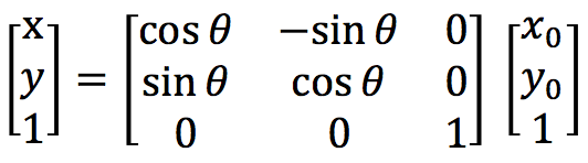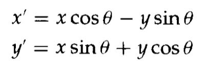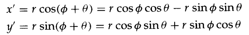 如上图,r是点到原点的固定距离,角θ是点的原始角度位置与水平线的夹角,θ是旋转角。坐标表示