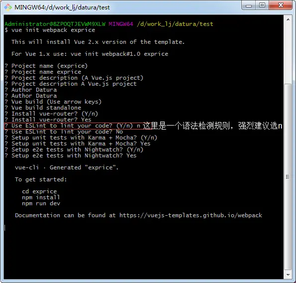 $ vue init webpack exprice --------------------- 这个是那个安装vue脚手架的命令