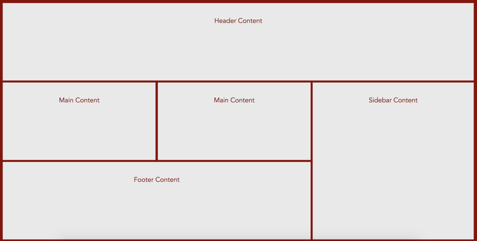 grid-template-areas: 'header header header' 'main section sidebar' 'footer footer sidebar';