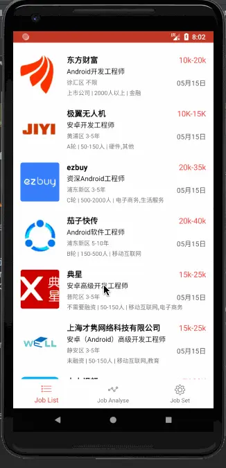 接下来说一下写这个APP的初衷吧,因为以前学习爬虫的时候一直想写一个分析职位的APP,但是那时候还对IP代理什么的不是很理解,而且也不会用,被封了几次后就搁浅了