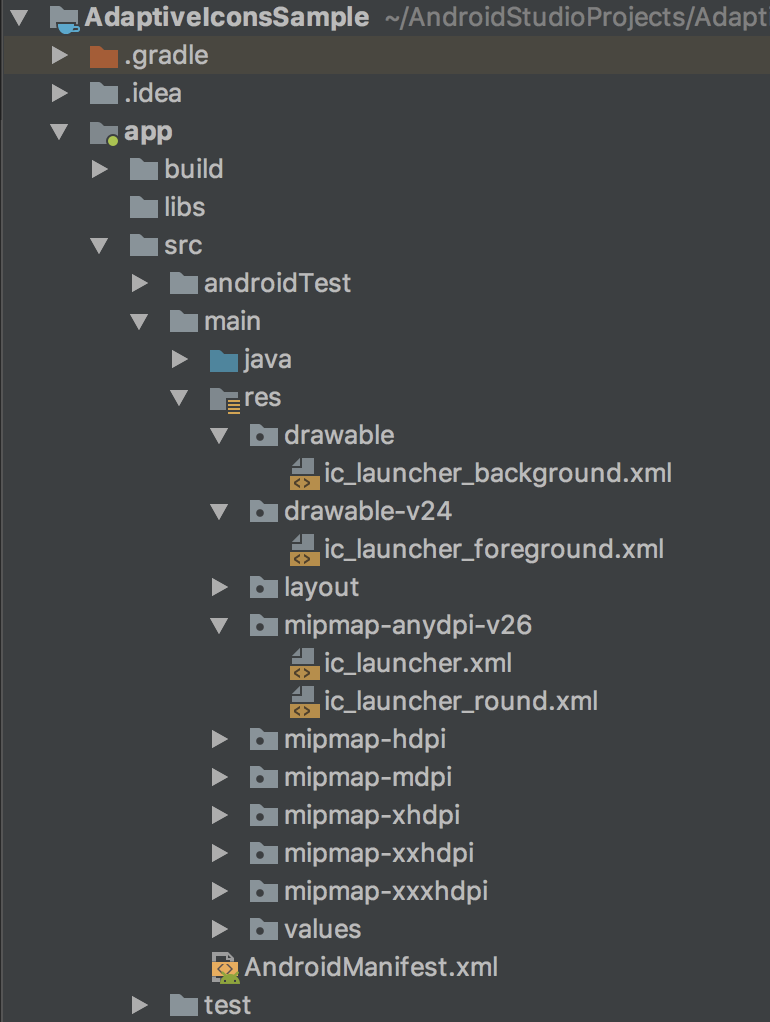 比以往多一个 res/mipmap-anydpi-v26 文件,打开,有背景和前景。