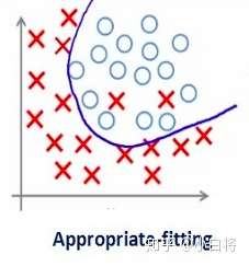 这将导致最终的模型为一个简单线性网络,并且可能会在训练样本上是欠拟合。因此,如此大的正则化系数是没有用的,我们需要一个合适的正则化系数,它正好得到一个如下图所示的泛化模型: