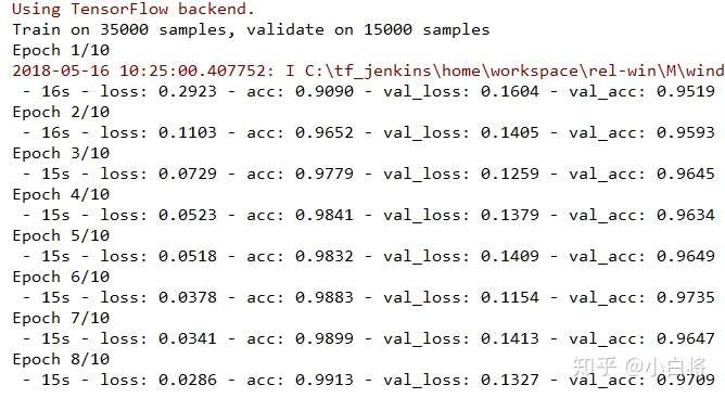 此时可以看到训练在第8个epoch就停止了,因为验证集准确度连续2个epochs没有提升。早期停止对训练较大的epochs时比较有效,你可以认为它是对训练的epochs数目进行优化。
