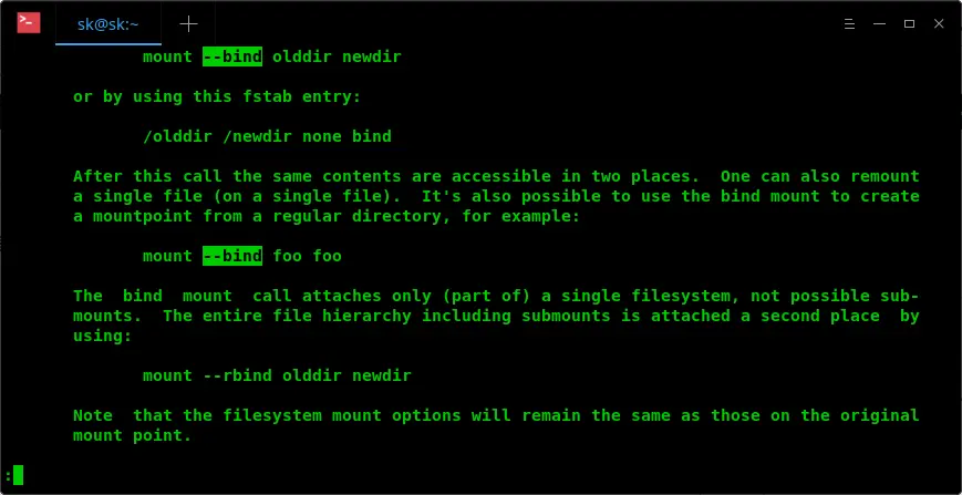 man mount | less +/--bind