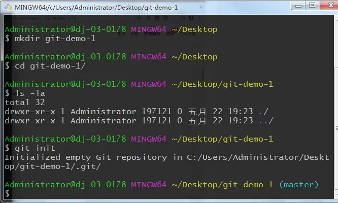 7、使用 git commit -m "信息" 将你 add 过的内容「正式提交」到本地仓库(.git就是本地仓库),并添加一些注释信息,方便日后查阅