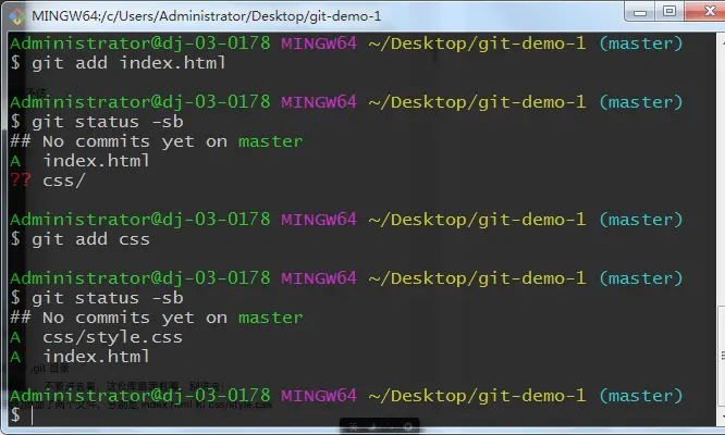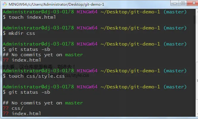 4、运行 git status -sb 可以看到文件前面有 ?? 号