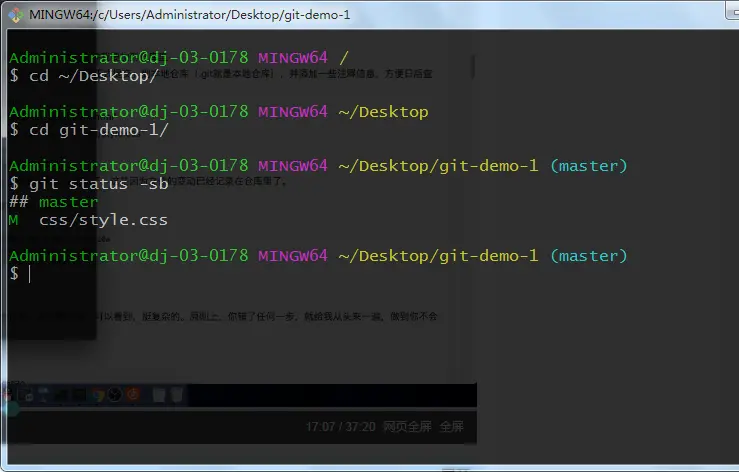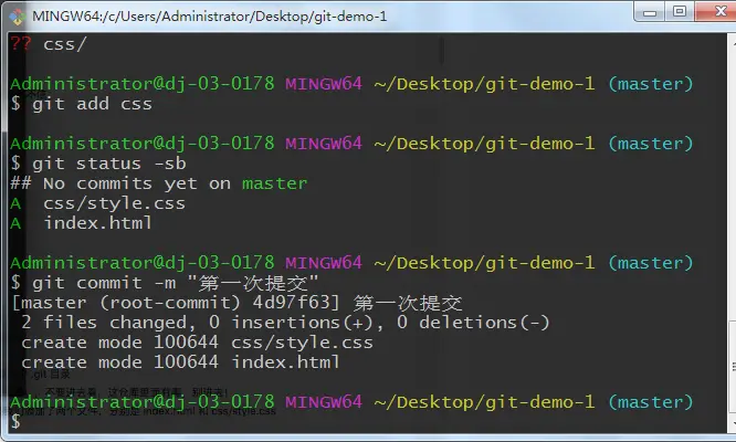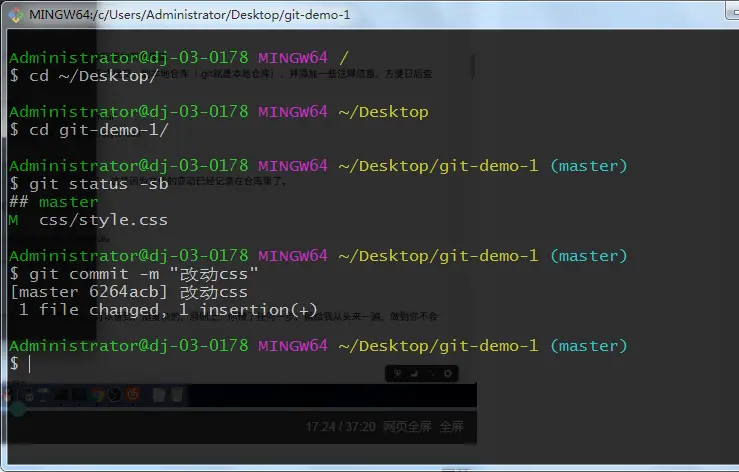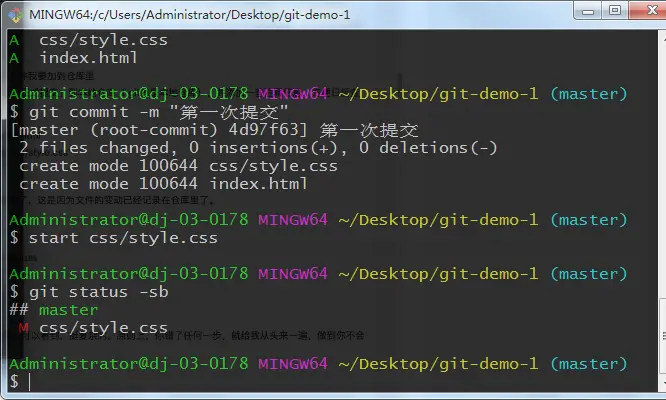 11、运行 git commit -m "改动 css",这个改动就被提交到 .git 本地仓库了