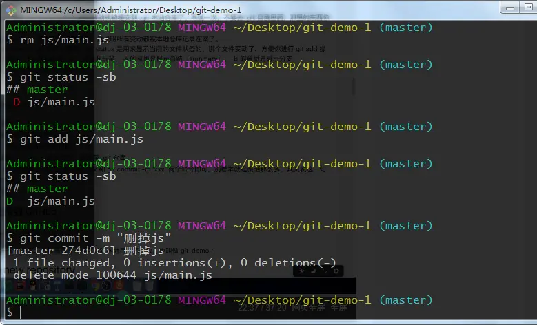 再次运行 git status -sb 发现 M 有红色变成了绿色(绿色表示这个改动确认提交)