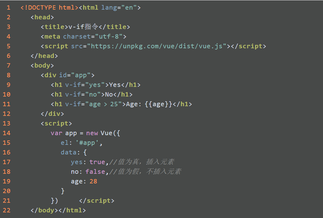 条件判断指令,根据表达式值的真假来插入或删除元素,表达式返回一个布尔值。语法规则如下: