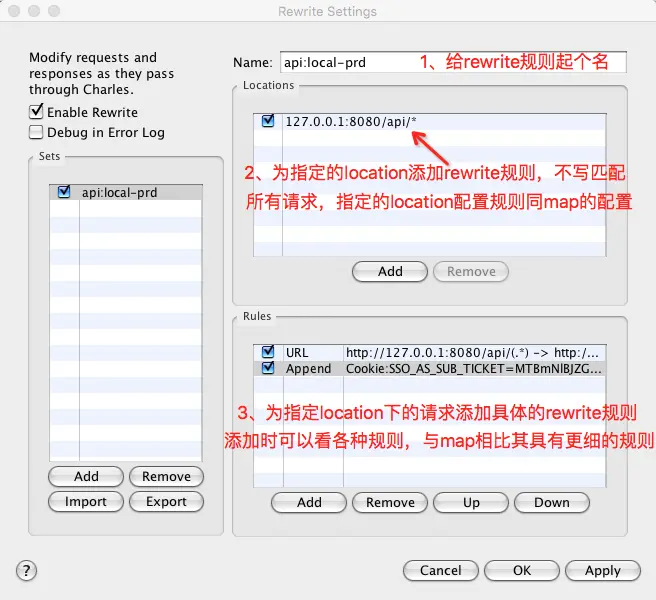 上面map Rewrite中用127.0.0.1:8080/api/*下的所有接口替换成指定host下对应的/api/*路径,而其他接口不做处理,用rewrite同样可以实现