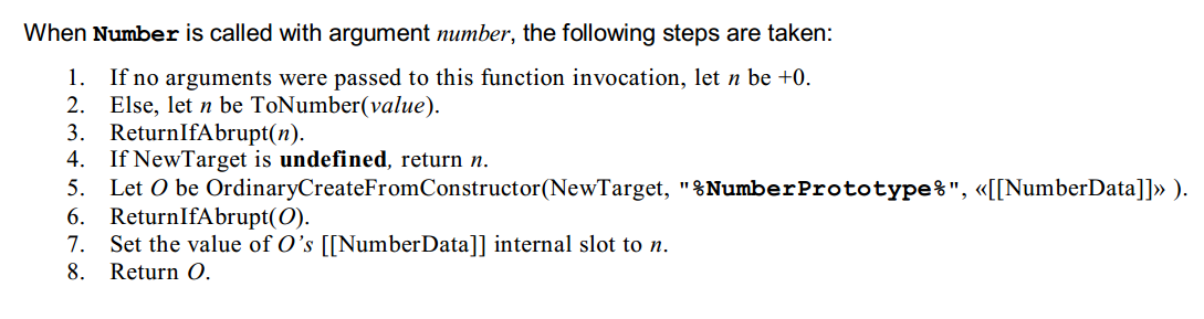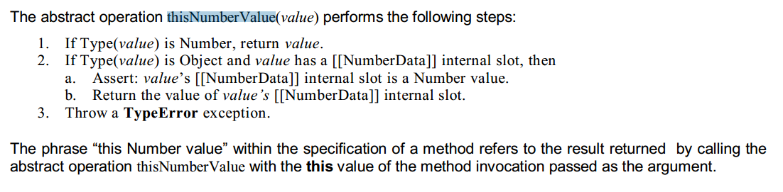 。大致我们可以认为这是一个内部值。同时在文档中可以查阅到诸如 Set the value of O’s [[NumberData]] internal slot to n 之类的话语,