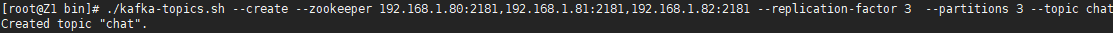 创建名为chat的topic,其备份数为3并且每个topic下存在3个分区(由于启动了3个broker,因此topic的备份数最多只能是3)