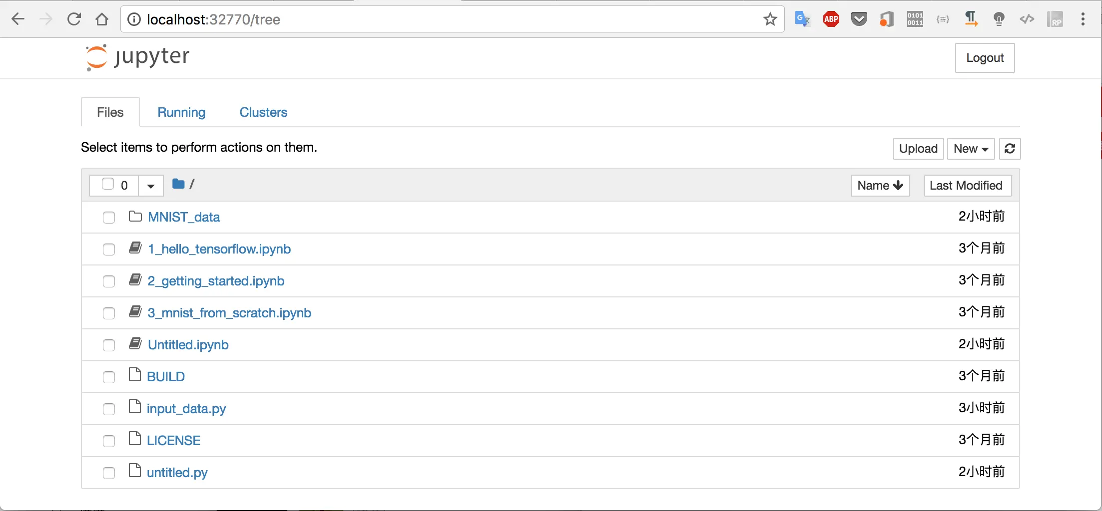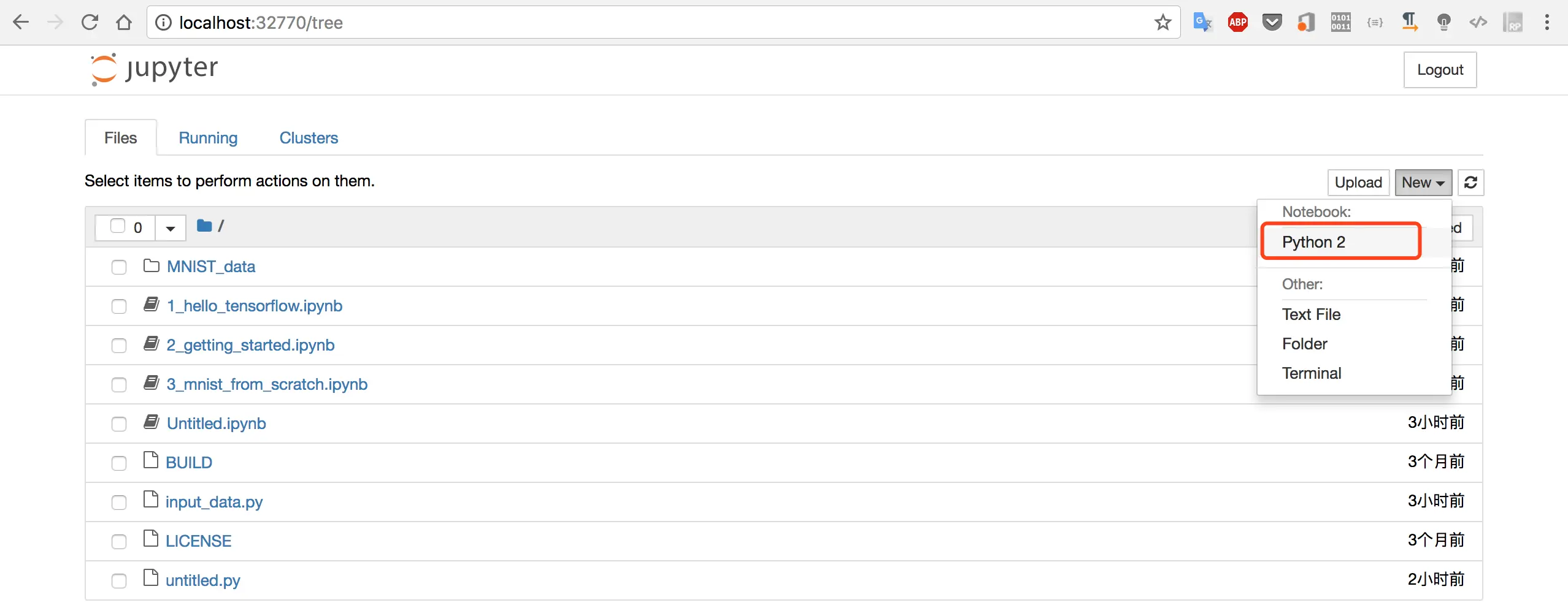 输入网址就可以访问Tensorflow的web控制台了,我们编写的代码就可以在控制台上执行,当然也可以直接点击Docker上的EXEC,通过命令行访问