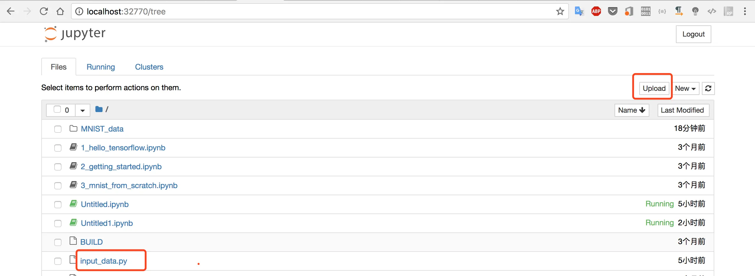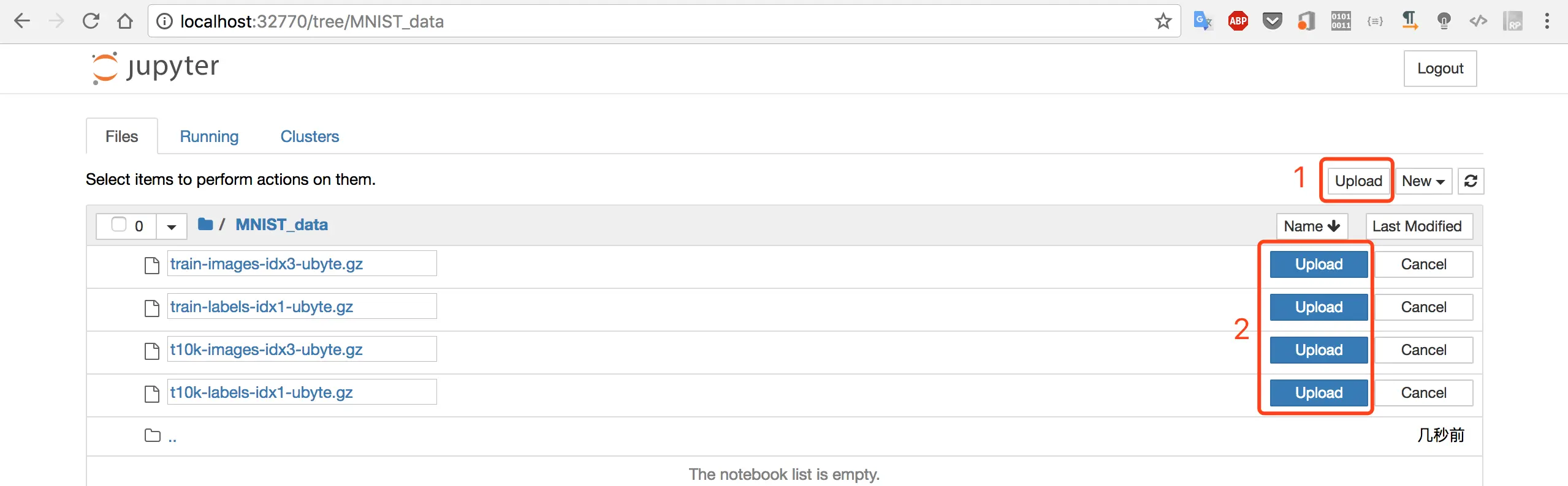 控制台先创建文件夹MNIST_data,然后把四个文件上传到MNIST_data文件夹
