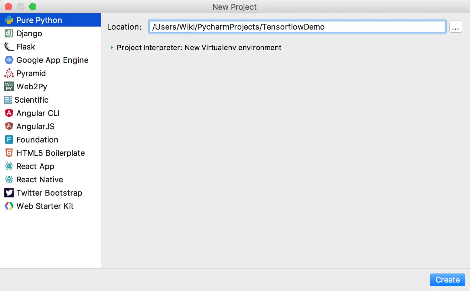 我是使用官网推荐的Virtualenv方式,基于Python 2.7。