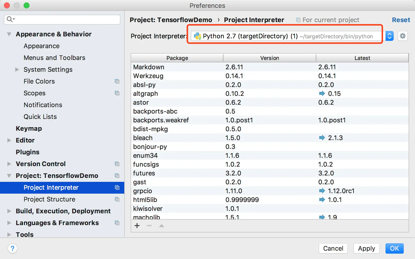 (targetDirectory)$ pip install --upgrade tensorflow