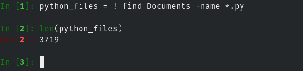 另一个很酷的功能是使用 ! 字符执行系统 shell 命令的能力。然后可以在 IPython shell 中引用该命令的结果。