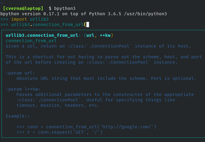 bpython 并不能像 IPython 做那么多,但它却在一个简单的轻量级包中提供了一系列有用功能。除其他功能之外,bpython 提供:
