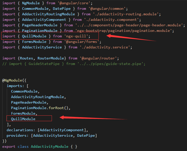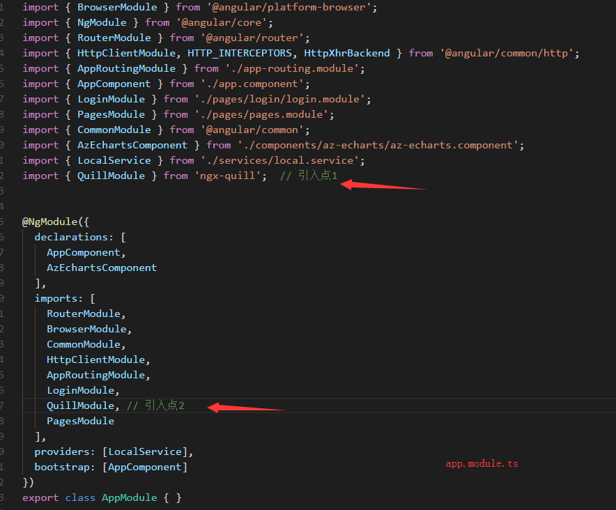 在app.module.ts引入(ngx-quill的)QuillModule :