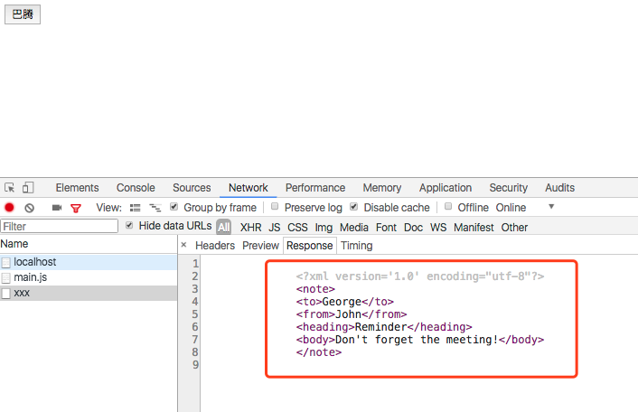 //'只要修改main.js 内的 request.open('POST','/xxx') 即可以改变请求方式 PUT DELET 但是如果乱写 服务器是不会接受的'